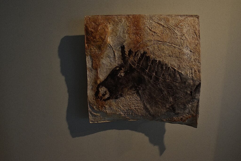 C’est de cette façon aussi que nous découvrons, au cours de notre déambulation aquatique, soulignés par des rayons de lumière, mis en évidence par une projection colorée, quelques-uns des 500 dessins et gravures qui recouvrent les parois de la grotte.